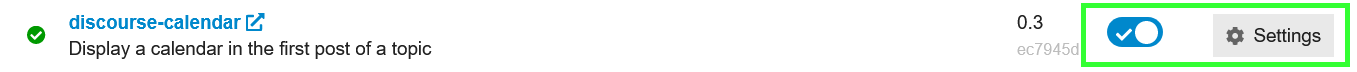 日历插件可以通过切换开关或从其设置中启用,两者都可以从您的 admin/plugins 页面访问: