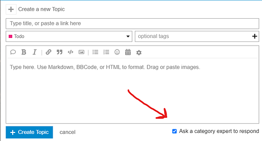 当前接受专家提问:启用后,发帖编辑器将显示复选框供用户标记「向专家提问」主题。